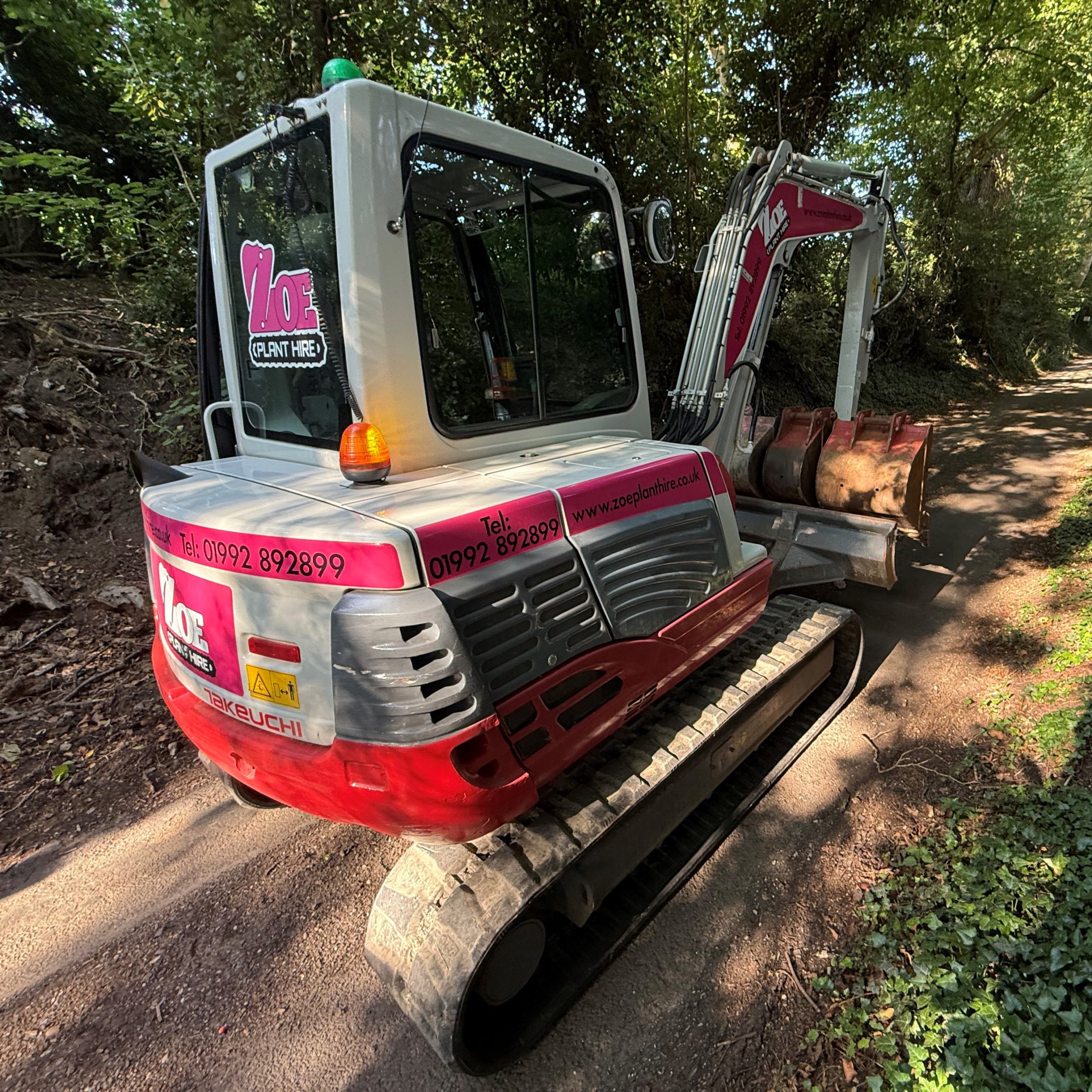 Excavator, radio, heater, tracker, key pad, orange and green beacons, rear view camera, fuel pump, DOZER BLADE, OFF SET BOOM, etc
